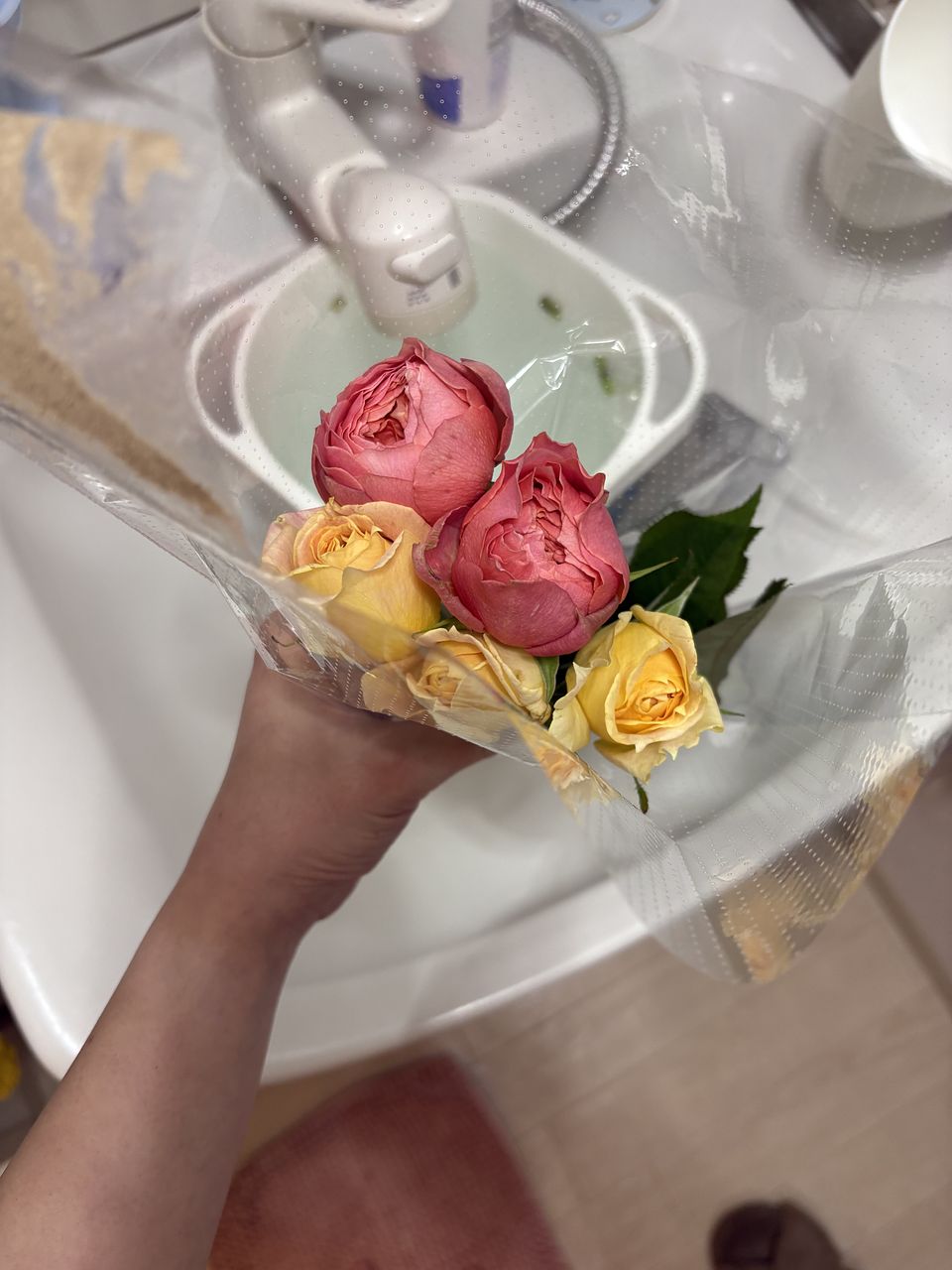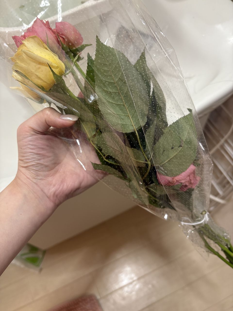 小さなお花が5つだけしか見えず、半分より下のあたりに、短く小さなお花が隠れていました。あまりにボリュームがなく、ブーケとは思えません。