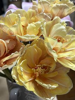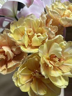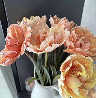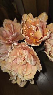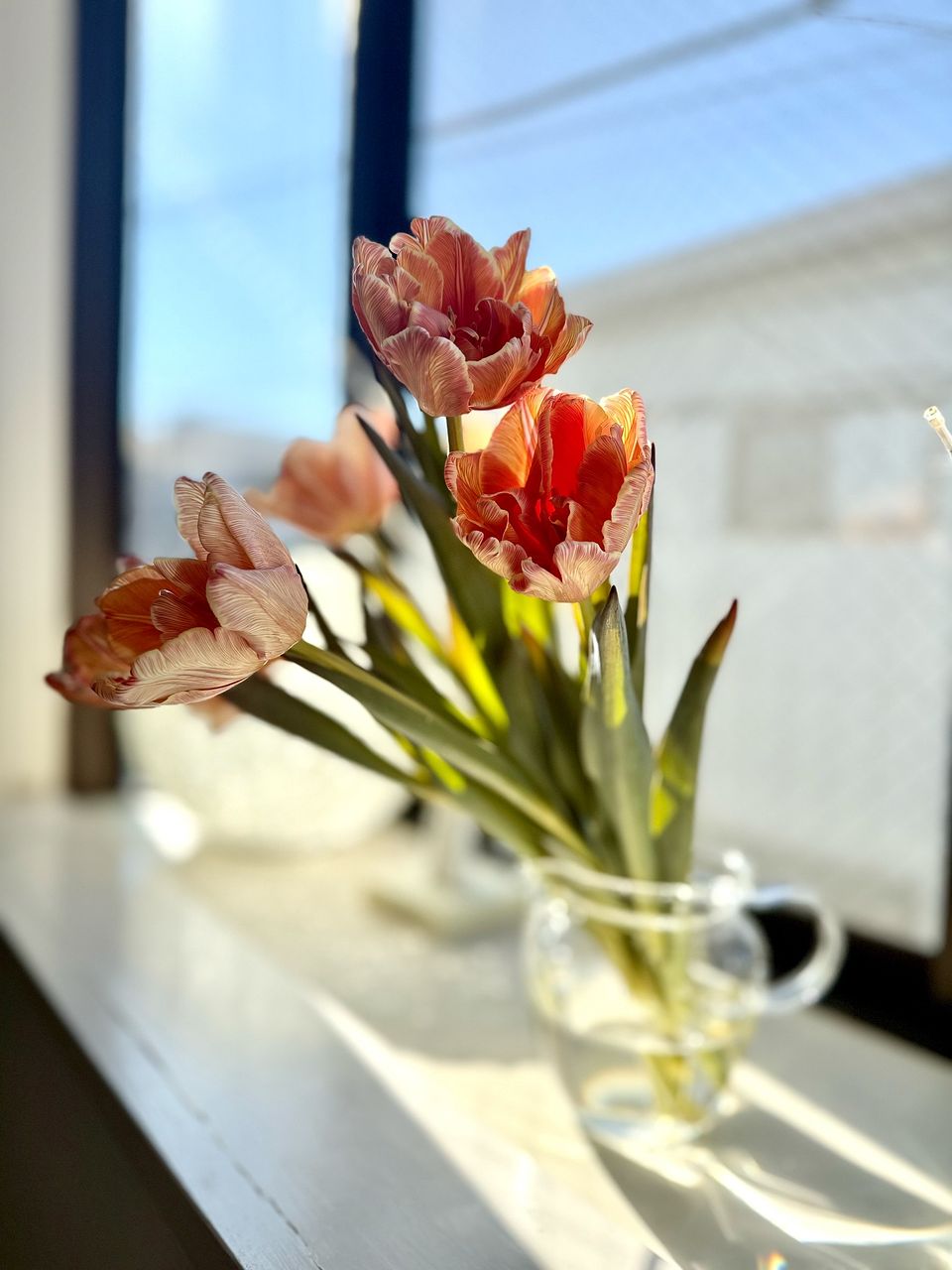 なかなか花屋さんには並ばない、珍しいセピア色のチューリップ🌷前回買った時は、一重のギザギザだったけど、今回は八重咲のかわいいチューリップでした!開いてもかわいいが続くので嬉しい。 ただ届いた時から、少し開き気味だったので、少し蕾系のものが入ってくれてると、より長持ちして嬉しいかもです。 でも、可愛くて大満足です!!