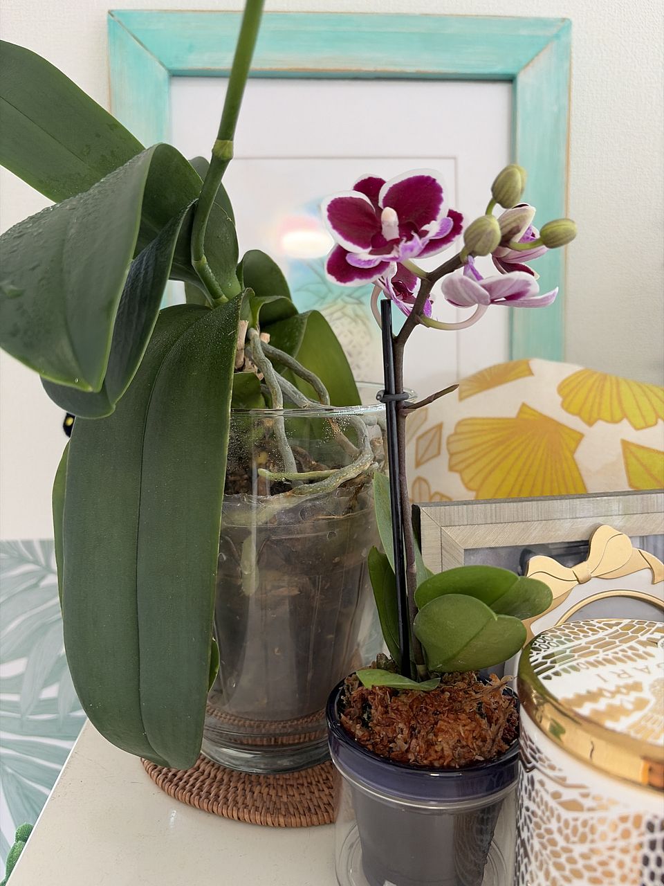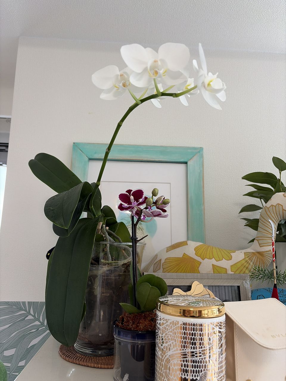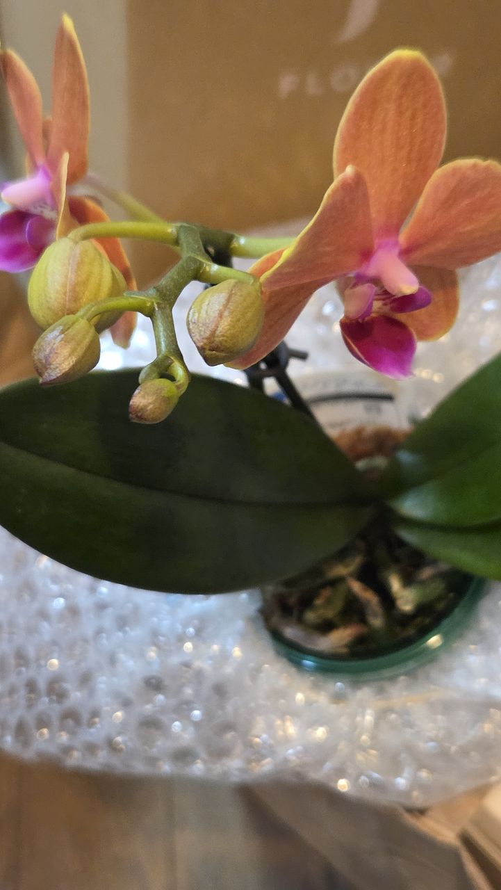 ミディファレノ届きました。2回目の注文でした。 前回と同じ感じの色が届き、少し残念でしたがとても長く楽しめるので、期待しています🤣 蕾が10個もあるので、順番に咲いてくれるといいですね🤭 楽しみながら癒されたいと思います🥰
