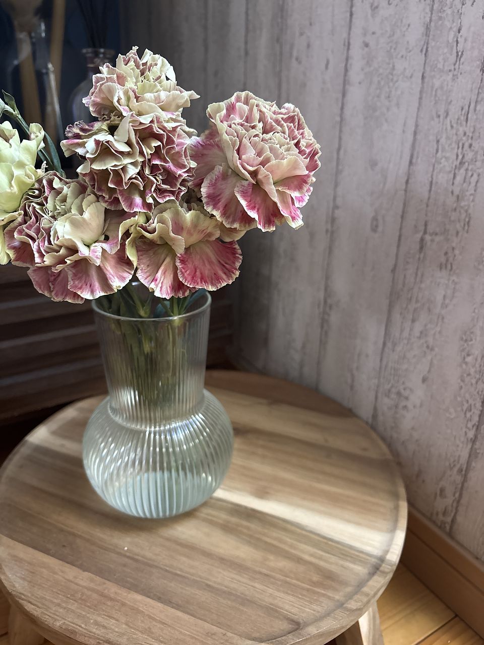フリルのような花びらのカーネーションをたっぷりと束ねました🍷