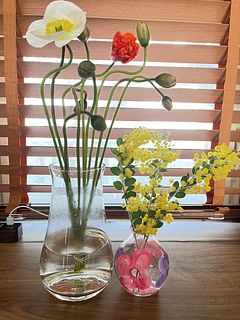 ミモザのふんわりとした質感と、紙風船のようなポピーが魅力的🌼