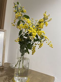 ミモザが届きました ひと枝はとてもボリューミーで 全体のバランスも良くそのまま花瓶に飾るだけで 部屋が明るくなりました☺️