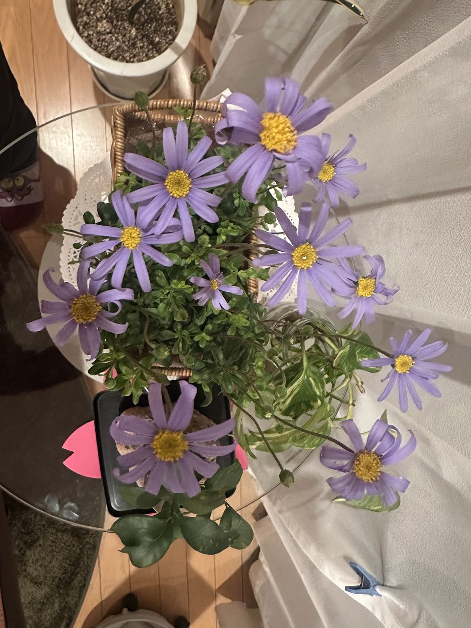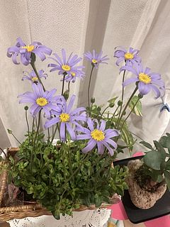 ブルーデージー「アズールブルー」を2鉢とバスケットをお届けします。澄んだ青い花びらと、黄色い中心のコントラストがきれいな品種です。株元から次々に花が上がり、春〜初夏まで長く楽しめます🌼🩵鉢植えはもちろん、寄せ植えのアクセントにもおすすめです。