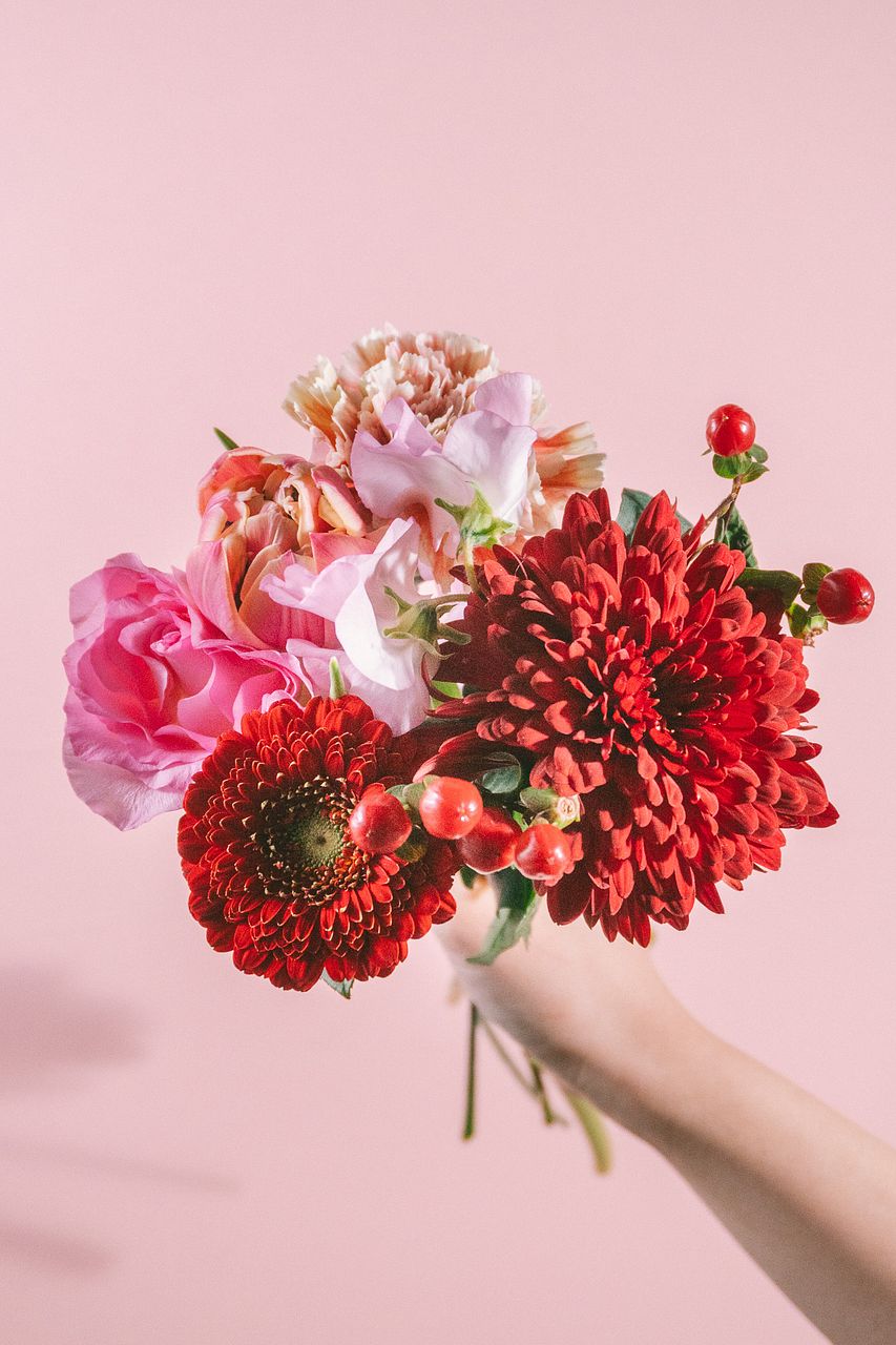 FLOWERのバレンタインは思わずキュン❣️とするような、ビビッドピンクとルージュレッドのお花をセレクト。