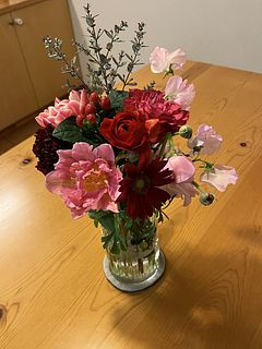 ちょっとお得になるので、一緒にフラワーベースも購入。お陰で何だかシックに纏まりました。