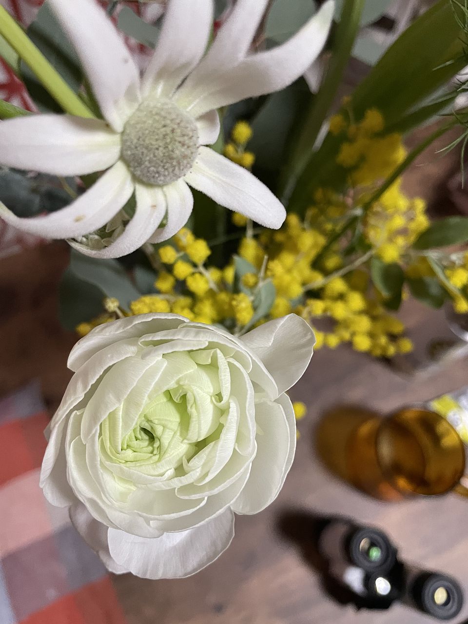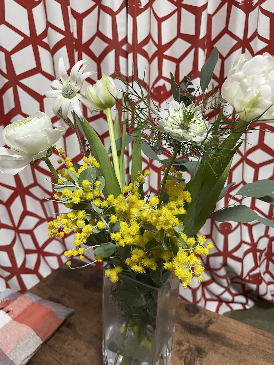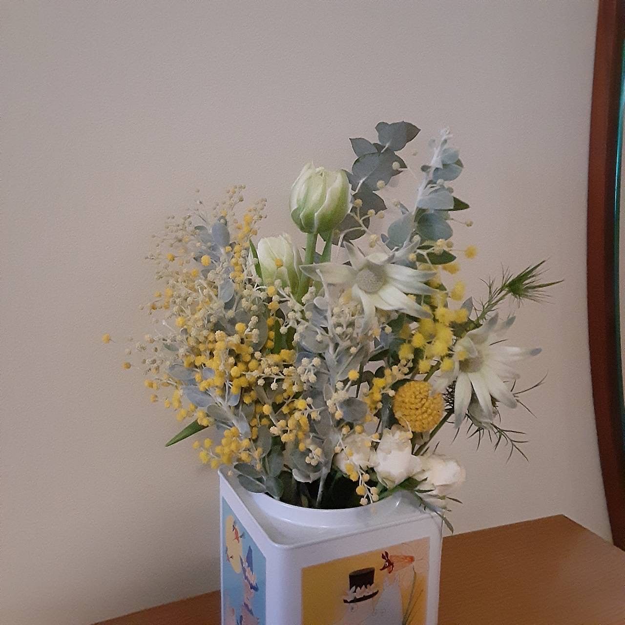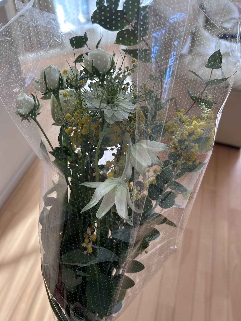 ミモザの先端が、枯れてるみたいな感じで、写真で見るよりボリュームも少なくちょっとガッカリでした。