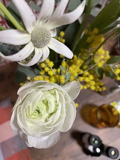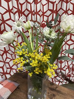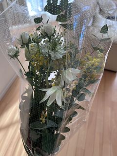 ミモザが可愛く、おおむね満足でした。 萎れて首が垂れた白い花があって残念でした。 元々こういうお花だったらごめんなさい。