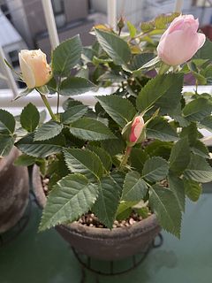 とても元気な葉っぱと可愛らしい色のバラで思わず笑顔になりました。つぼみが開くのも楽しみです。