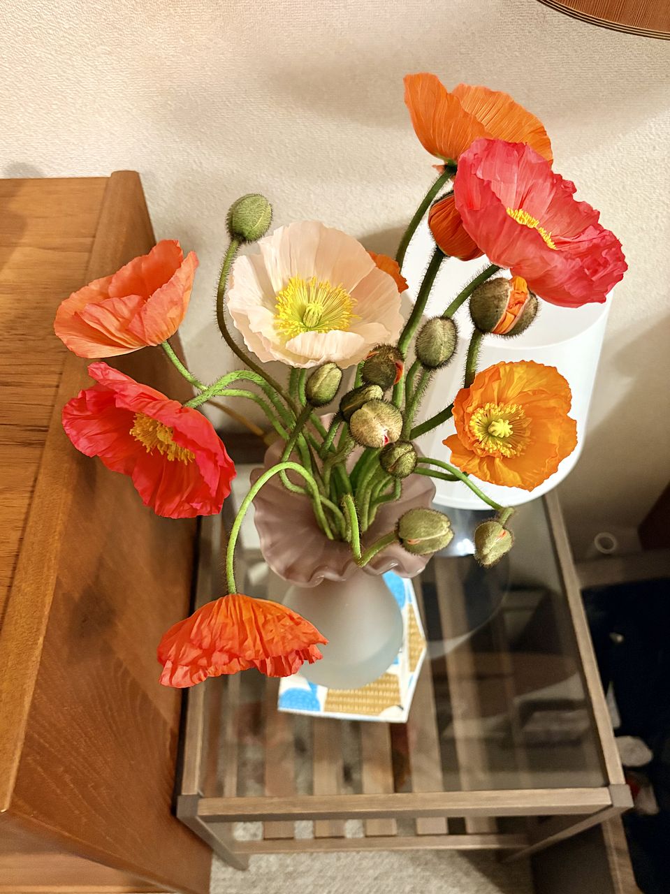ポピーは俯きがち。紙に巻いて水揚げを行ってみて。
