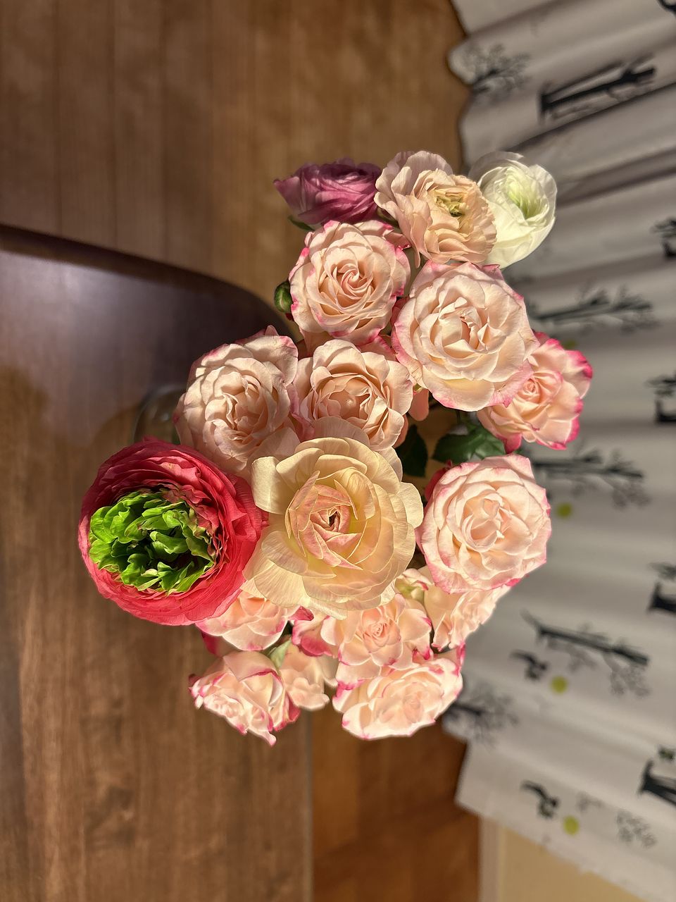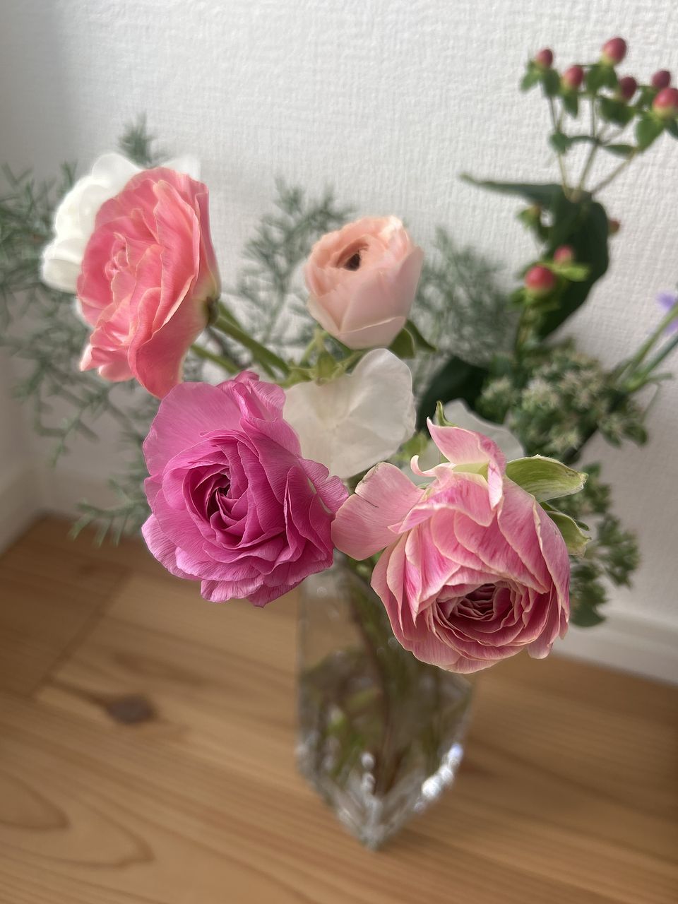 ボリュームは充分あって、しかもとても可憐なブーケでした。ラナンキュラスが少なめだったのは、ラナンキュラス好きの私には少しだけ残念でしたが。 でも毎日眺めるとキュンと幸せになれます。