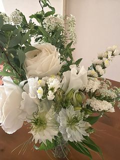真っ白い花とグリーン とてもきれいで可憐なブーケでした こちらで様々なお花を頼んでいますが、多くの種類が入っているブーケは微妙なものが多く、残念な思いをしてきました。 こちらはイメージ通り! ボリュームもあり、とても素敵です♡