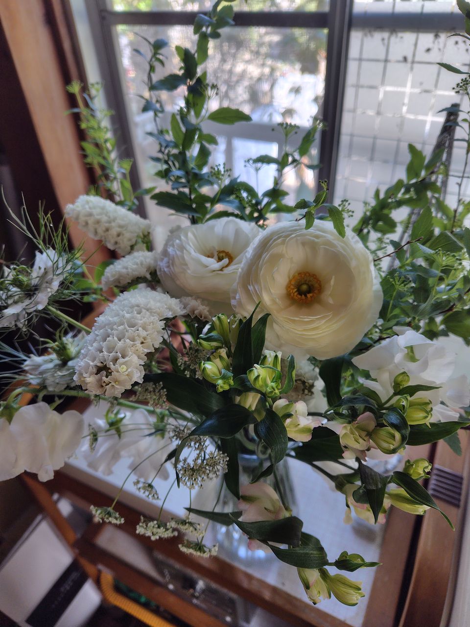 ボリュームがあるのにごちゃごちゃせず グリーンと白で優しい上品な感じでした まだ蕾のものもあったので、これからも楽しみです 素敵な花束でした