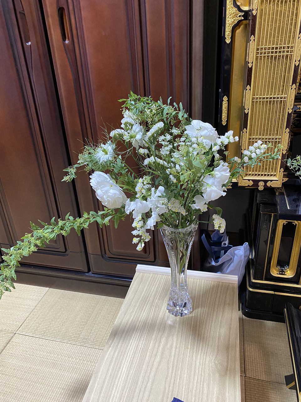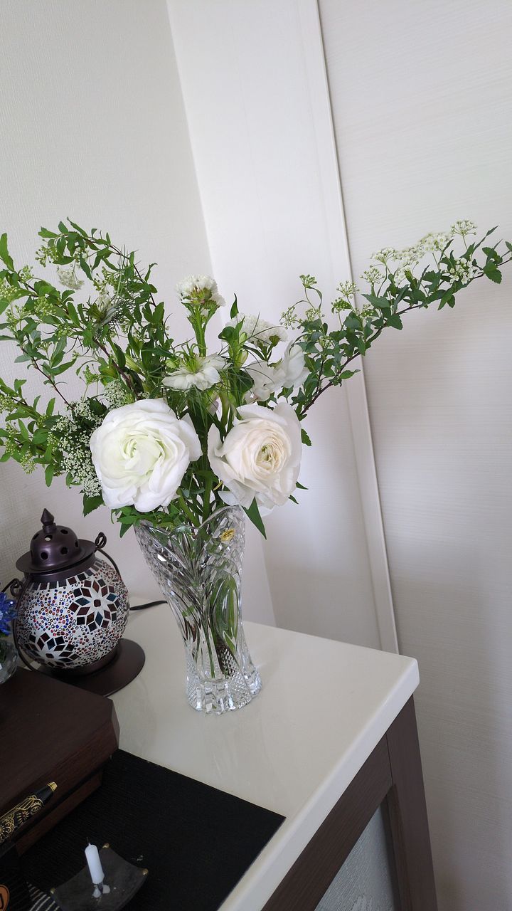 白と緑のバランスがめちゃくちゃ可愛かったです お花もたっぷりだったので分割して飾ってます