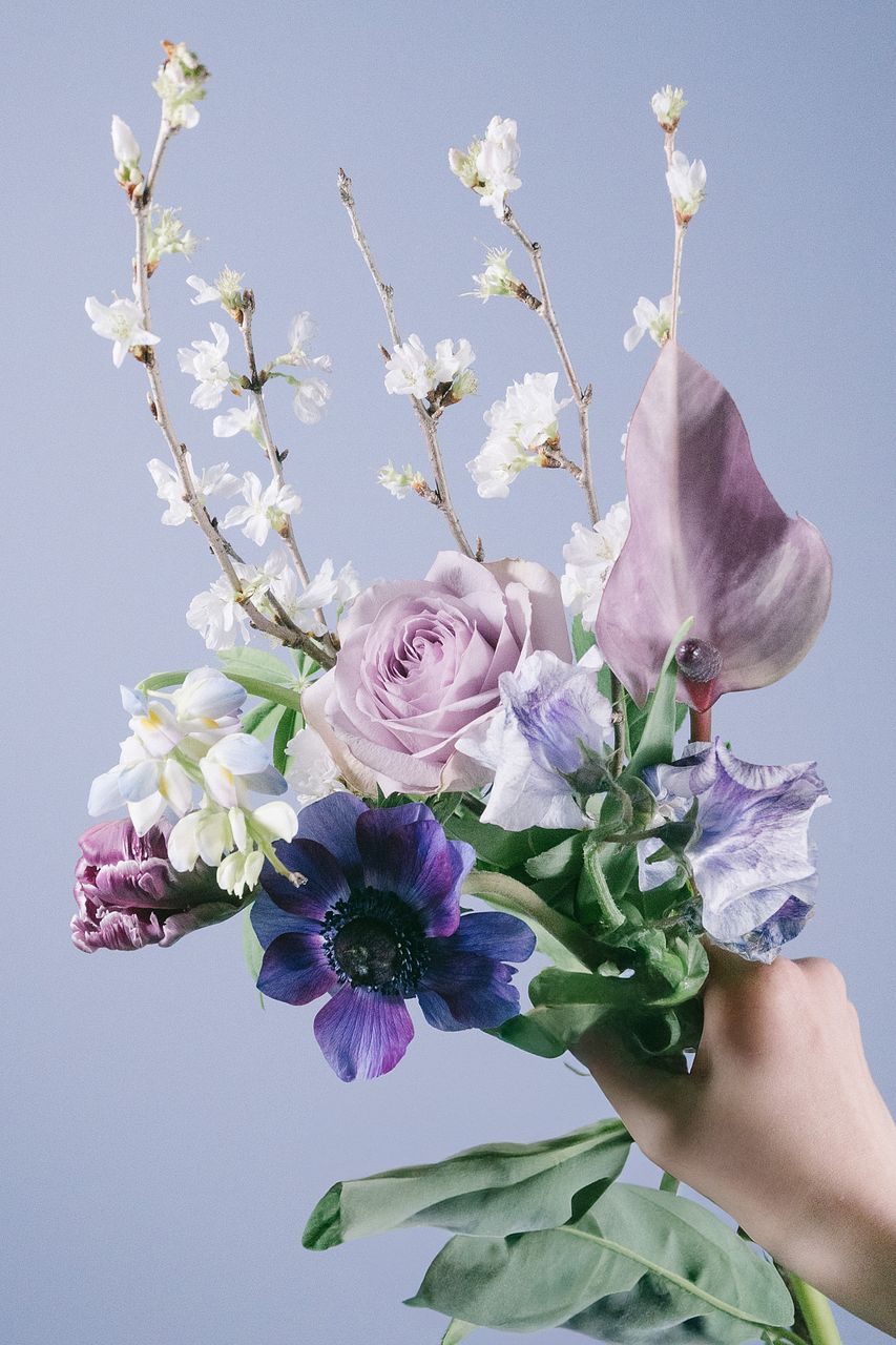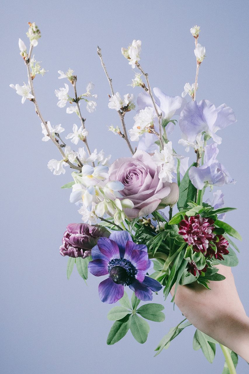 桜と夜空を思わせるような、シックなパープルのお花を合わせて🌙