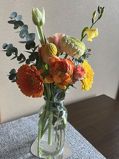オレンジやアプリコット、イエローのお花を集めたブーケ🍊🍋寒くなる冬こそ、心温まるウォームカラーのお花を飾って楽しみましょう🥰