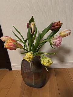 春のお花を飾れば、やさしい色合いと溶け合って軽やかな雰囲気に。ゴツゴツとした枝ものやドライを合わせると、ぐっとワイルドで存在感のある表情を見せてくれます。