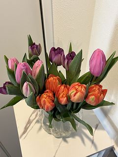 優しい色合いでどんなお花にも合いそうです。 同じチューリップ🌷でもベースが違うだけで印象がかなり違うのでびっくりしました。
