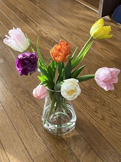 お正月のお花から春のお花に変わり、色とりどりのチューリップ可愛いです。香りは、ほとんどありませんでしたが開くのが楽しみです。