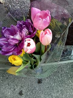 知人に贈りとても喜んでいました。 大人になってから選ぶのはバラやカーネーションが多いのですが、色とりどりのチューリップは乙女心をくすぐるようです。