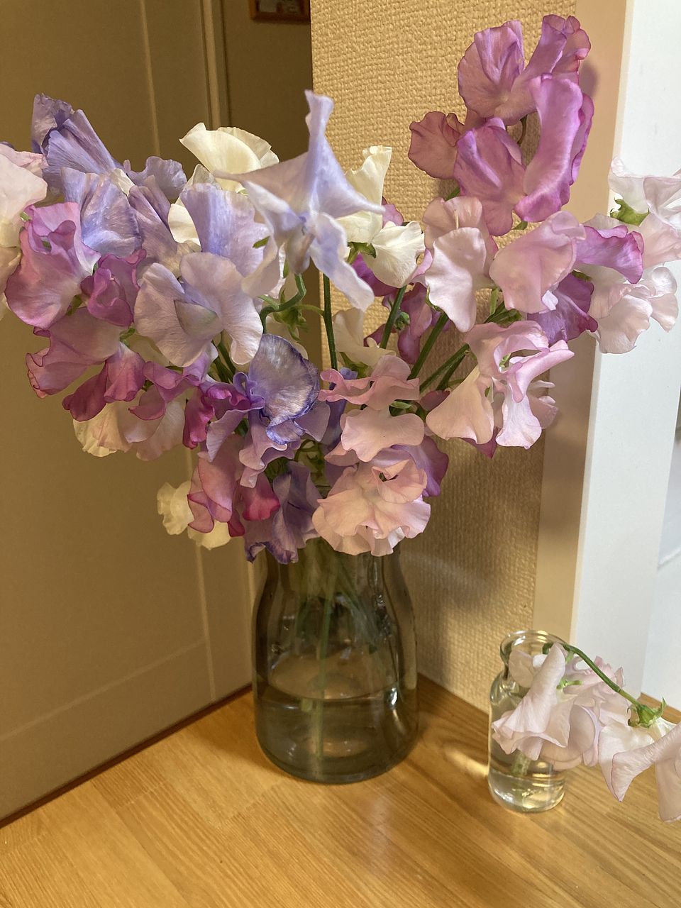 可愛らしいいい香りのスイートピーが届きました! お部屋がパッと明るくなり、香りで癒されています。