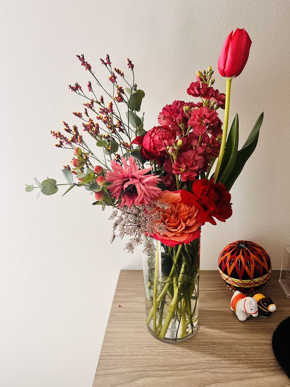 鮮やかなレッドのバラなどキュートなベリーカラーなお花を束ねました🍓
