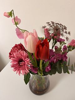 赤色ばかりで綺麗なのか?と少し不安でしたが、色々な赤でとてもまとまっていて素敵でした。 チューリップがクタッとなるのは仕方ないのですが、その他はしっかりとしていると思います。 少しでも長持ちするように、マメにお水の交換をしていこうと思います。 素敵で可愛い花束、ありがとうございました。