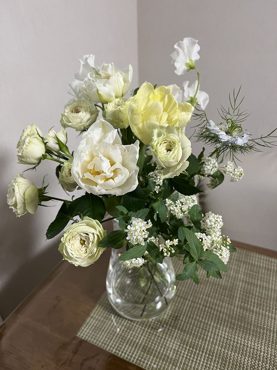 春らしい軽やかさと、凛とした品の良さをあわせ持つ、シンプルで洗練されたブーケです🕊️