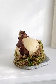 ぽってり姿がかわいい。受け皿などなくてもOK。このまま置いても育ちます。付属の苔の上に置いても、お気に入りの受け皿などに置くのもおすすめ。