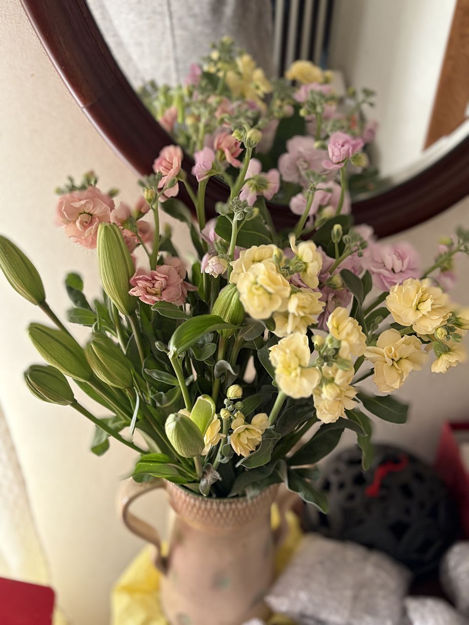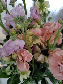 淡いピンクとクリーム色のストックがとても可愛く、色合わせのセンスが素敵でした。 お花の状態も良く、香りも上品で、飾るたびに癒されています。ありがとうございました。