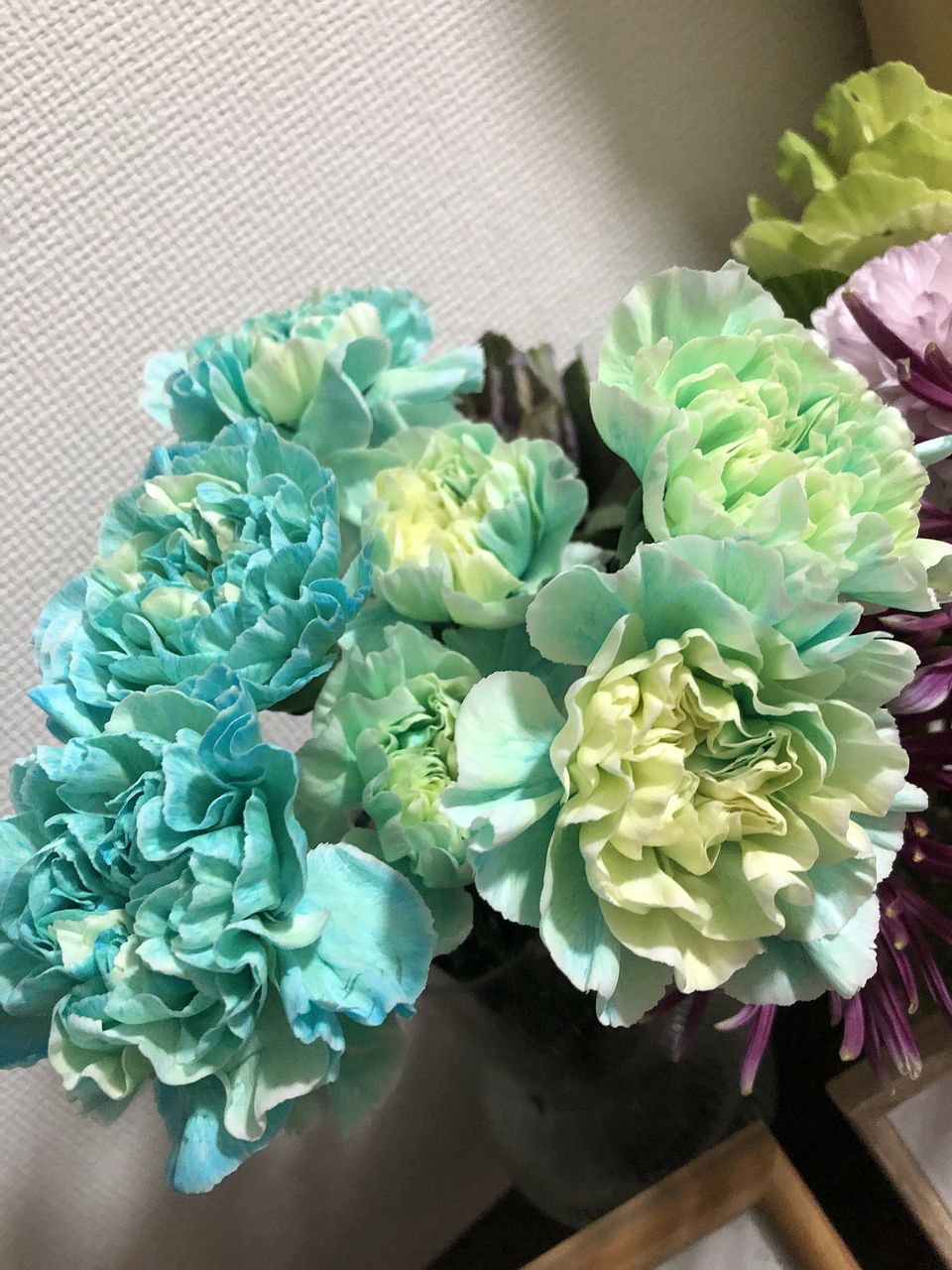 初めは色が濃い…と思いましたが、満開になった時本当にかわいいミント色になりました。3週間経ってもまだ枯れずに咲いてます🎵