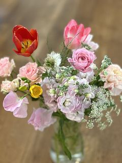 チューリップ、フリージア、ラナンキュラス、スイートピー、バラ、カーネーション、ストックなどをお届け☺️ほのかな甘い香りも一緒に楽しんで!