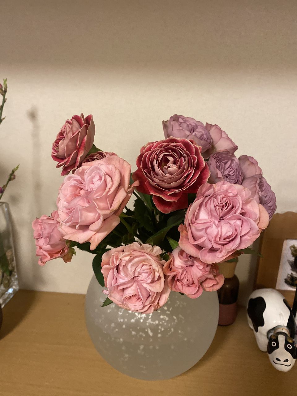 お花が2つ折れていたのが残念でしかが😢 ボリュームがありかわいいバラに癒されました✨ 長持ちしてくれるといいなぁ😌