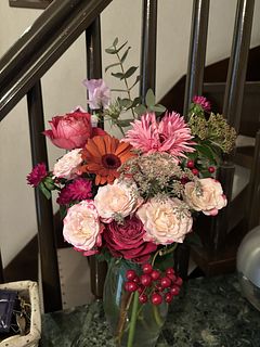 鮮やかなレッドのバラなどキュートなベリーカラーなお花を束ねました🍓