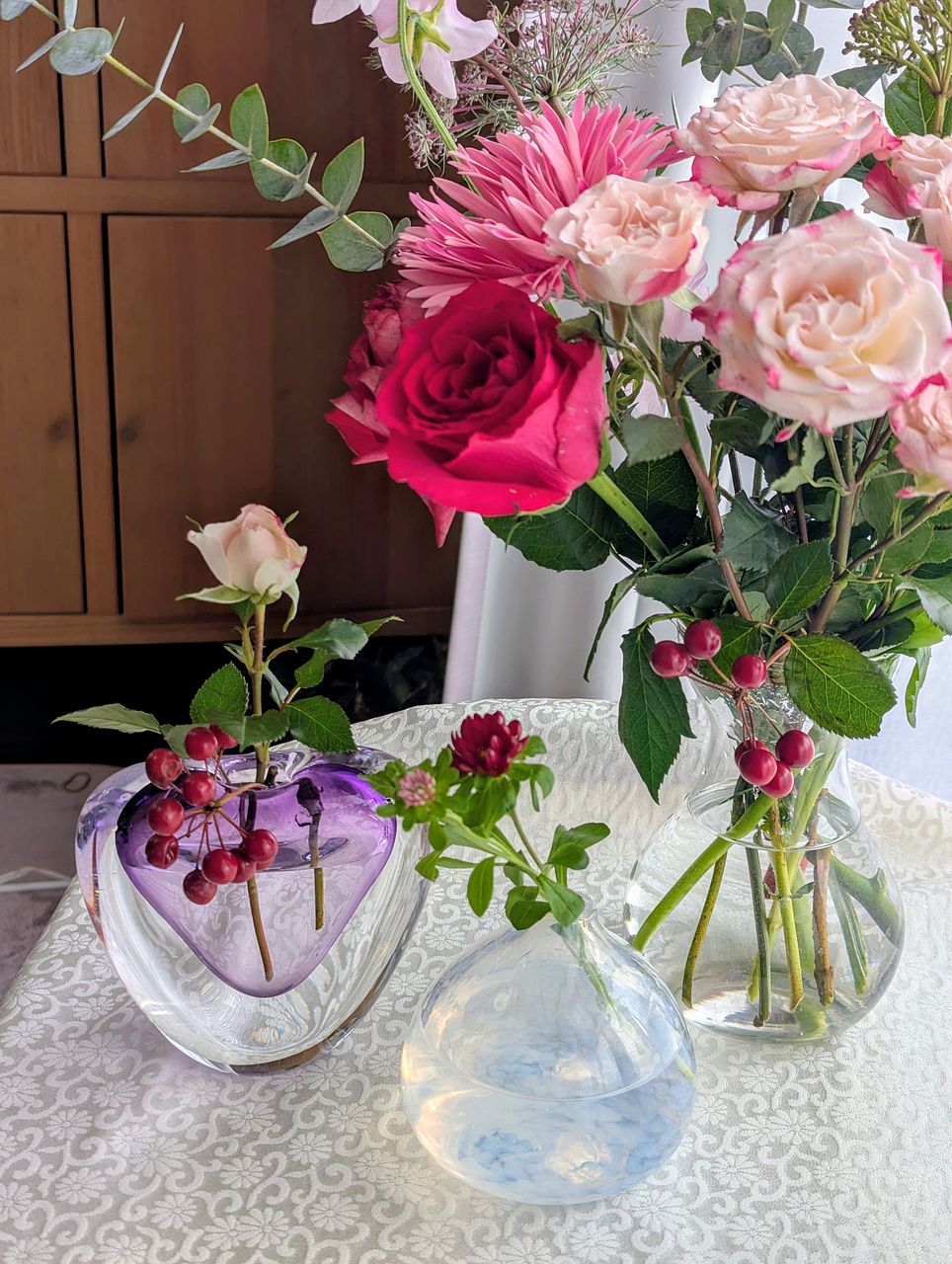 華やかで、とても素敵です💓 写真は、自信がないので投稿しませんが、 花器への投げ入れの😆でも雰囲気でます。 ひと枝のユーカリも雰囲気アップ✨