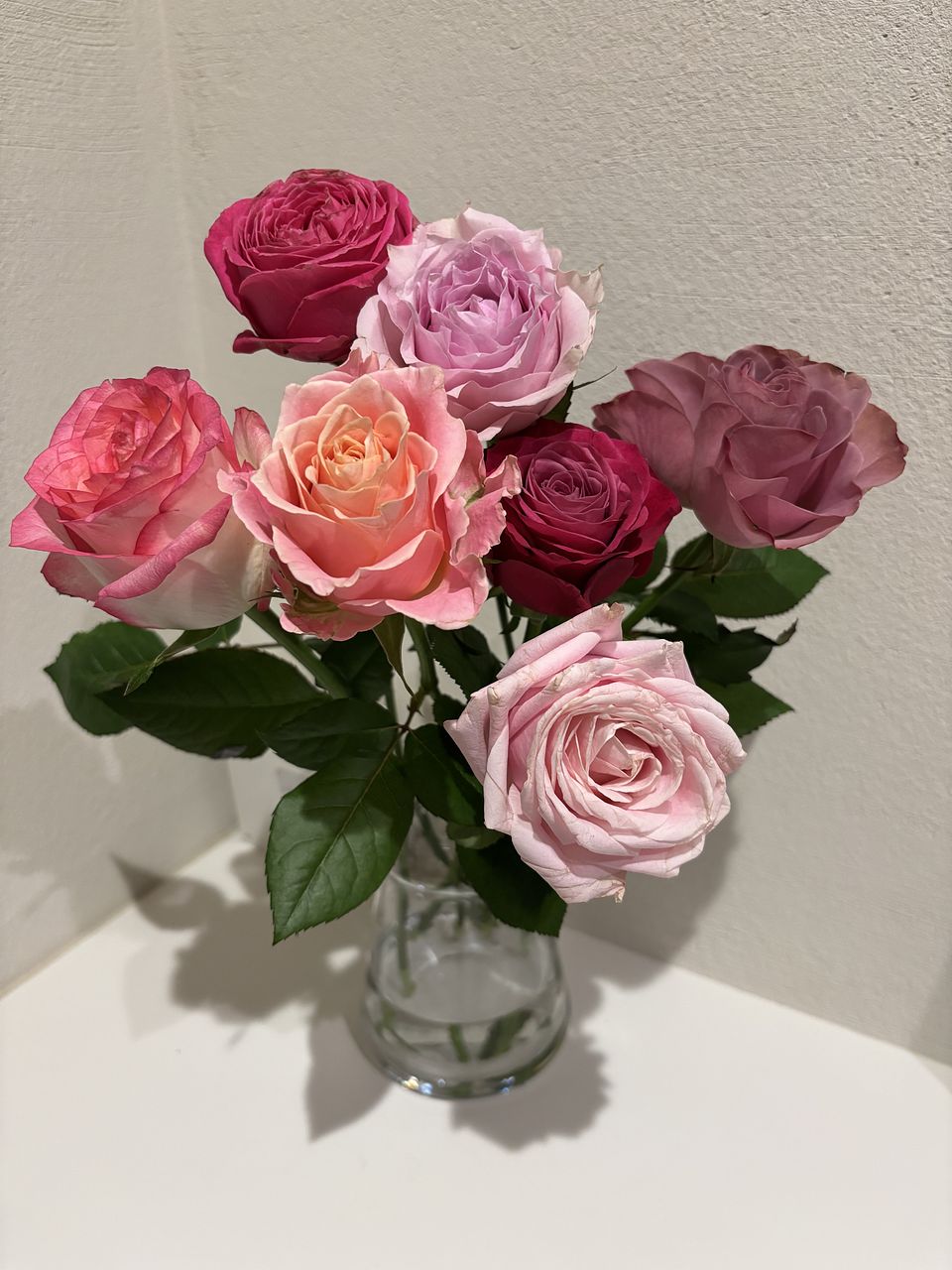 ピンク💕ピンク💕ピンク💕 色味の異なる7種類の素敵な薔薇🌹が届きました✨ どれもとても可愛くて綺麗で幸せ🥰めちゃ癒されます。 お手頃価格なのほんとありがたいです。 スーパーや街のお花屋さんでも買うけれど、こちらが一番持ちます。おすすめです!