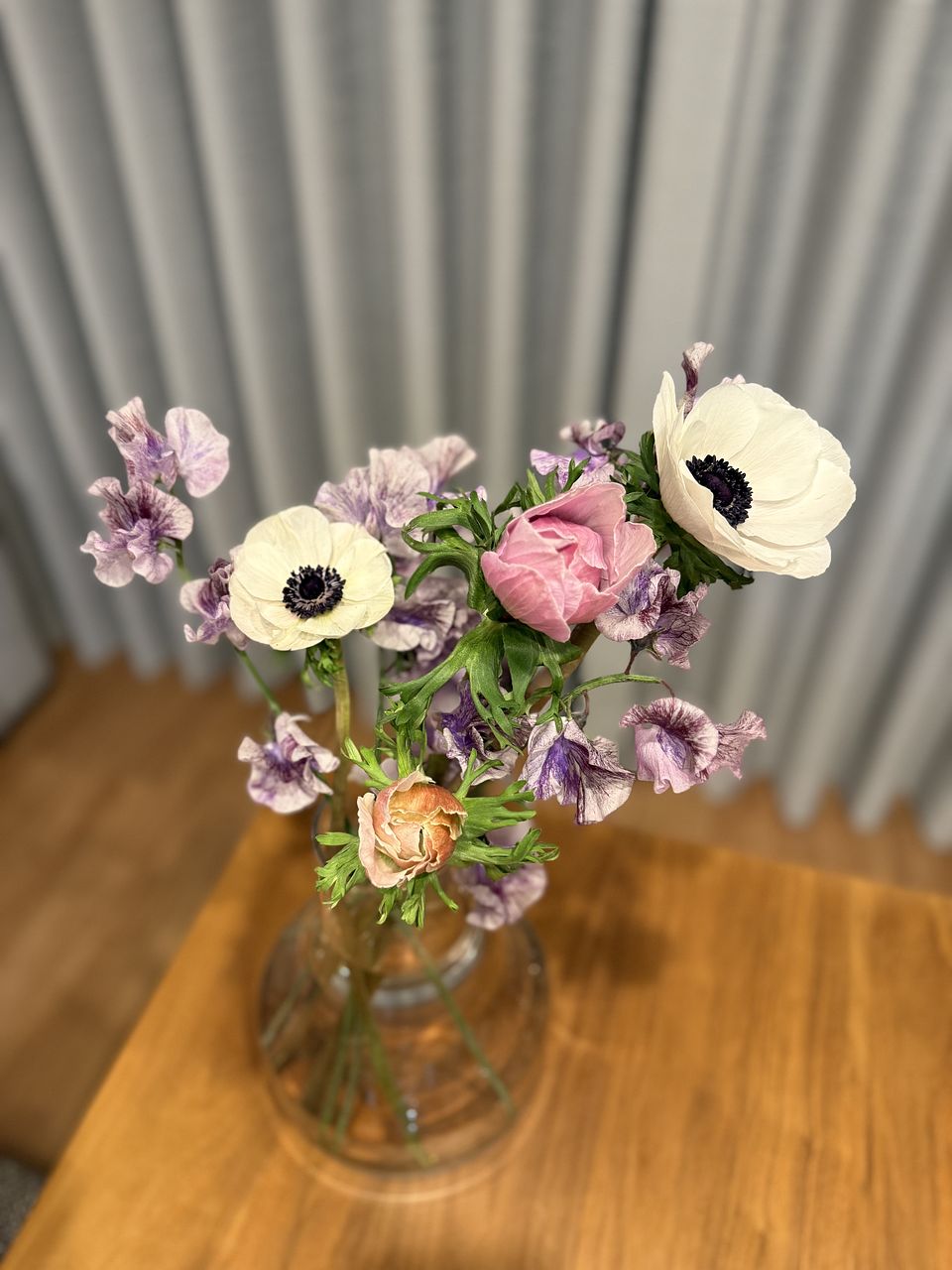 スイートピーの優しい香りが漂ってとても素敵なブーケでした。アネモネも咲いていく様子を楽しめそうです♪