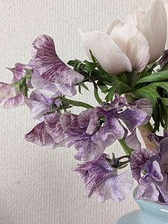 珍しい色合いのスイートピーと立派でしっかりしたアネモネでした🩷香りがほんのりでもう少ししっかり香ってもいいかなぁ。
