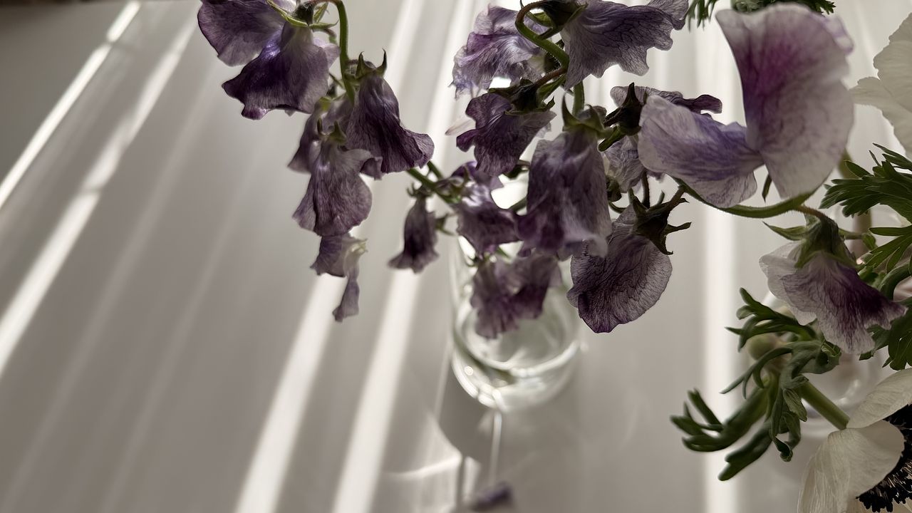 アネモネは素敵でしたが、スイートピーは2日で萎れ、花が落ちました。