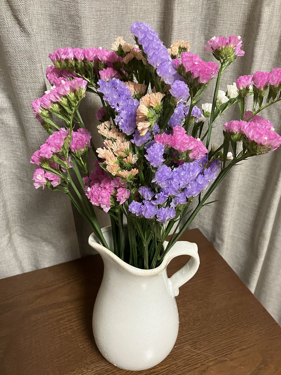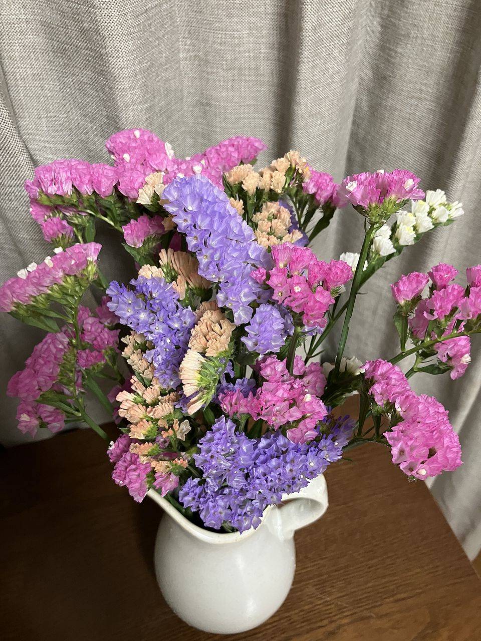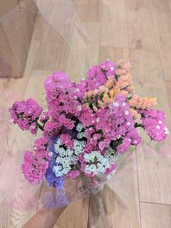 何色かあってキレイでした でも、スターチスは私の田舎だとわりと安い値段で出てることがあるので、今回もう少しボリュームあるのを想像してました でも、飾ったらまあまあキレイで ドライフラワーにするといいなあと思ってます