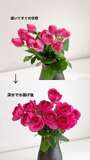 たっぷりの水で水揚げしてあげてくださいね!水圧で水がお花に届きます。