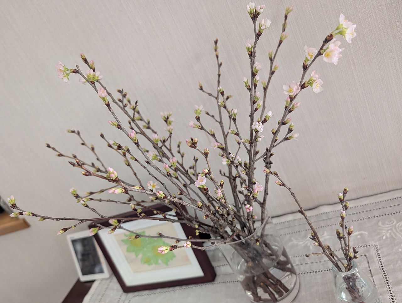 たっぷりの桜を花器にまとめて飾って、一足早くお花見気分を楽しんで🍡