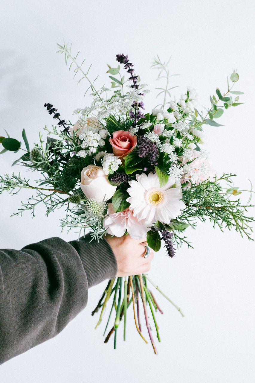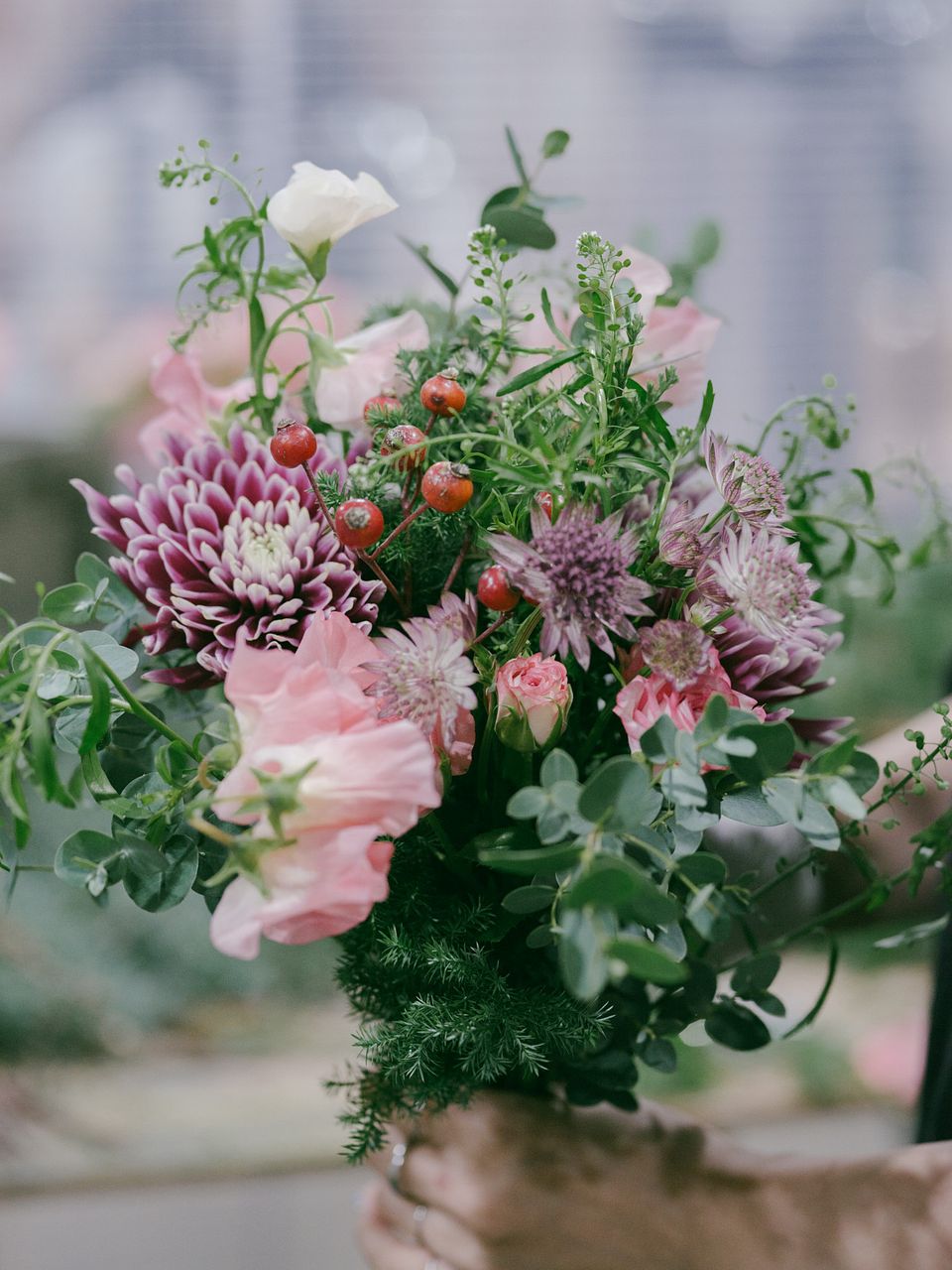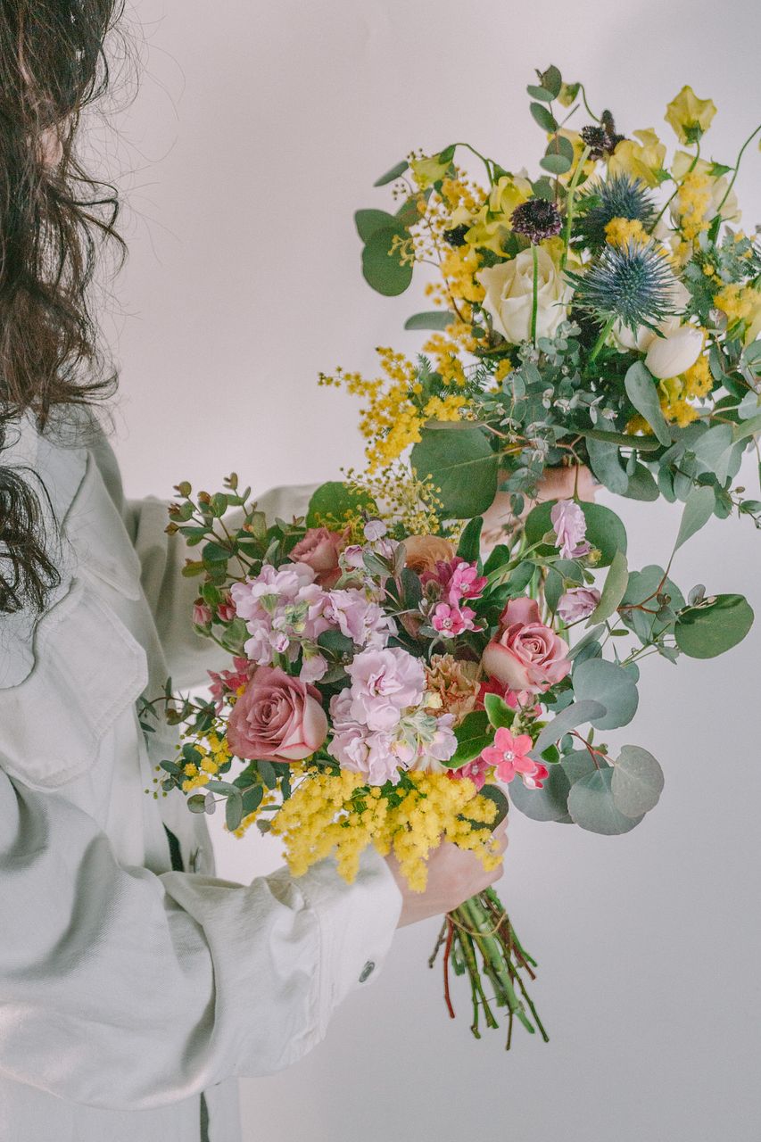 春の草花を贅沢に束ねた、季節感あふれるブーケ。