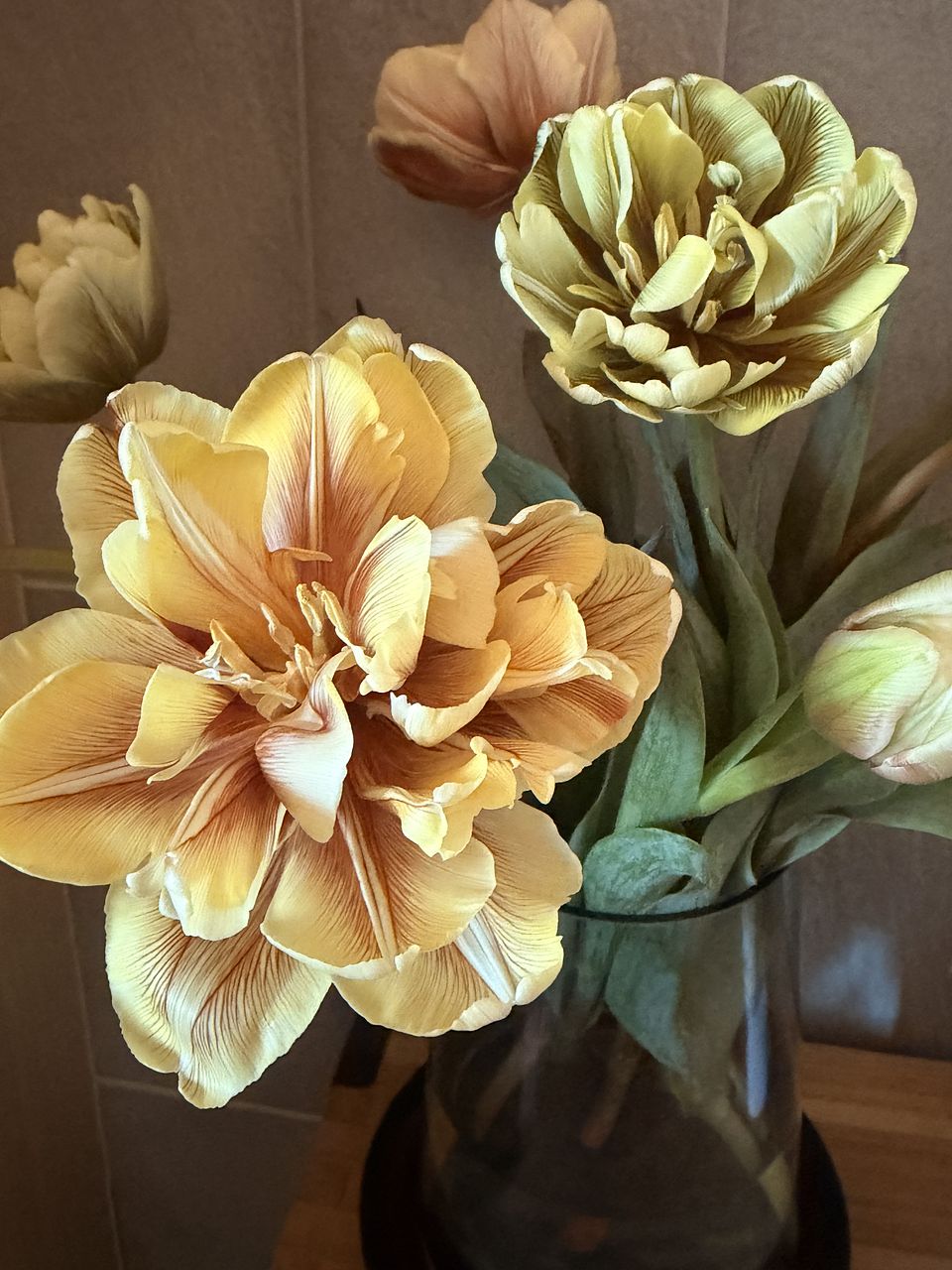 「チョコ」「モカ」「セピア」など、チョコレートカラーのチューリップを束ねました🌷