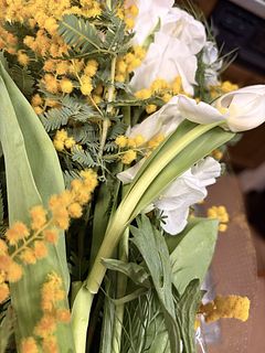 お花は大変綺麗で、ミモザも咲いてましたが、チューリップが折れてしまってたのが残念でした。それ以外はとても満足です。