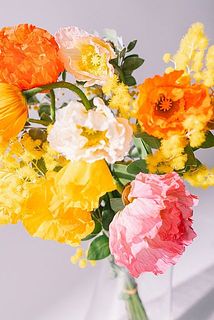 ミモザのふんわりとした質感と、紙風船のようなポピーが魅力的🌼