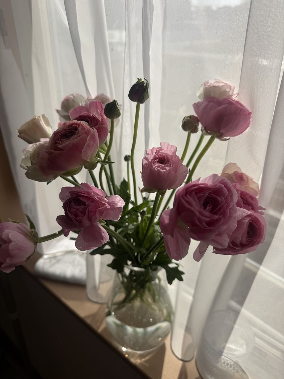 濃淡のバラエティ豊かなピンクのラナンキュラスをたっぷり束ねて。