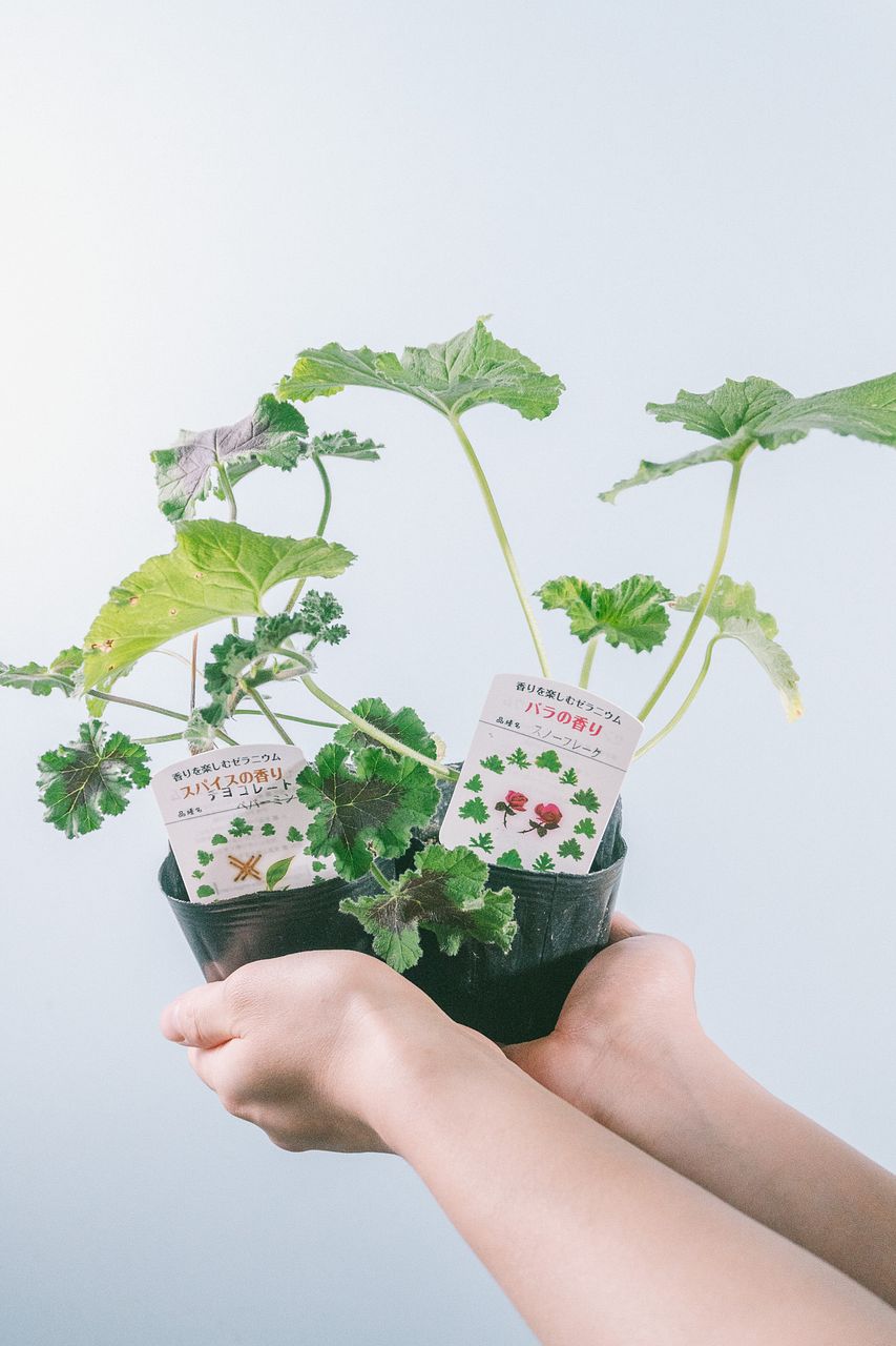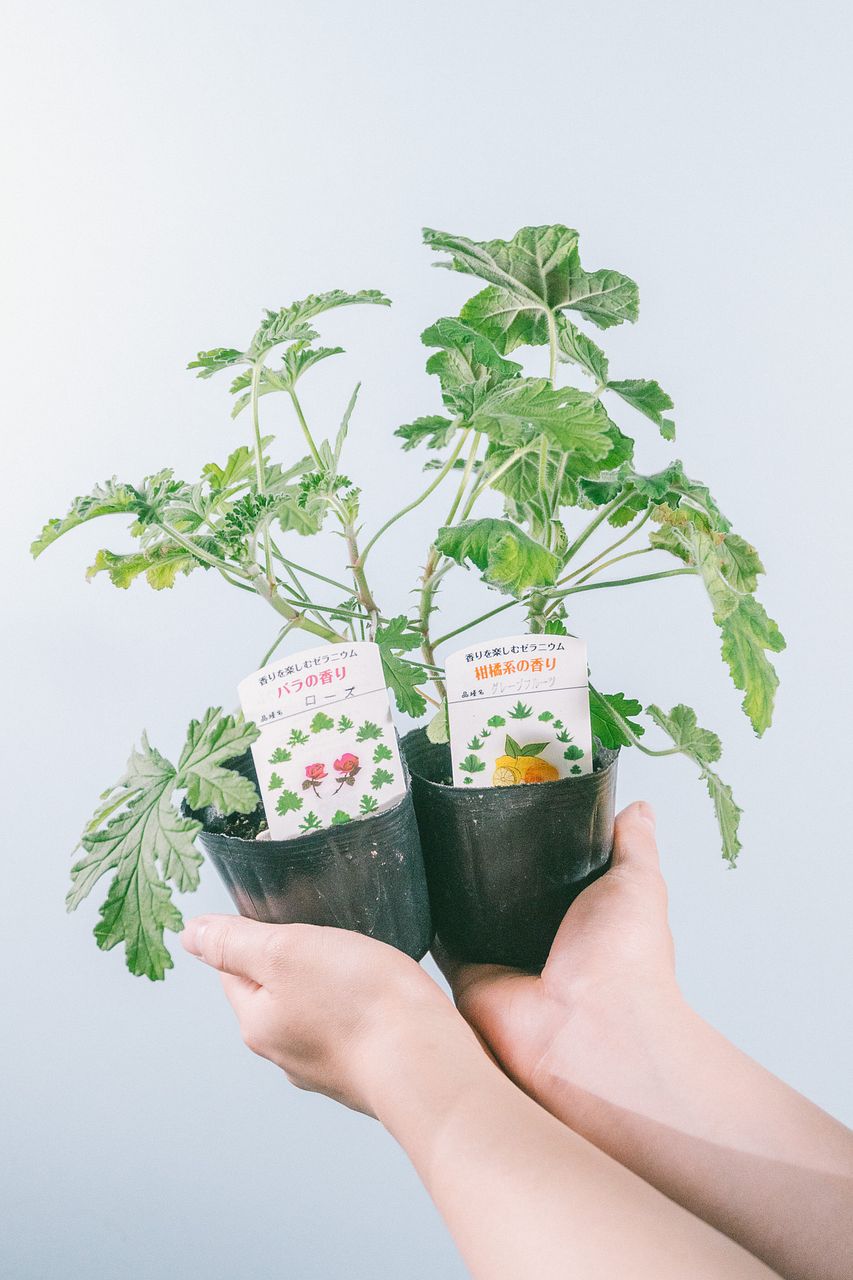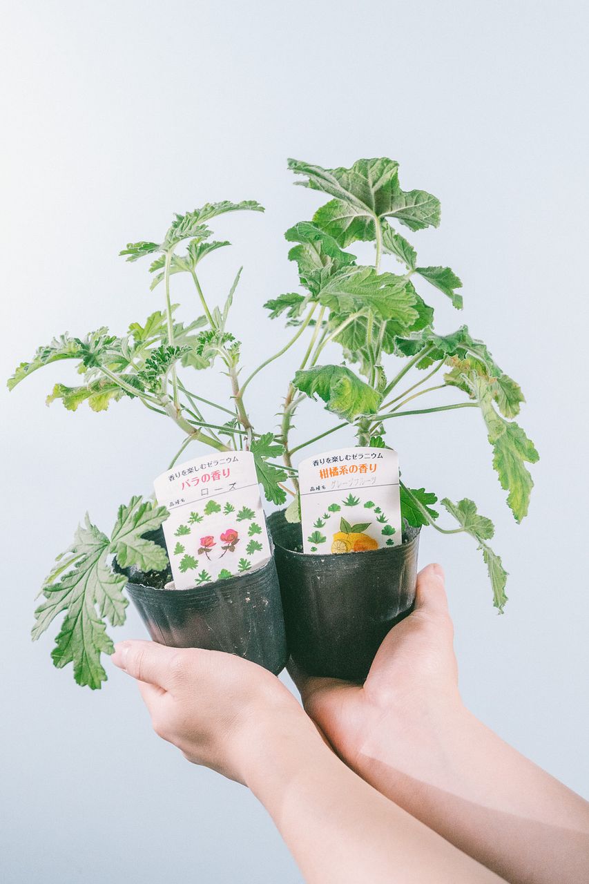 香りのよいゼラニウムを2鉢セットでお届け。葉を触ると柑橘やバラ、スパイスの香りがふんわりします🫧