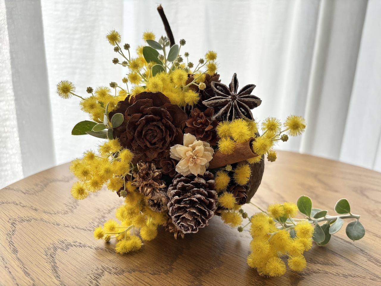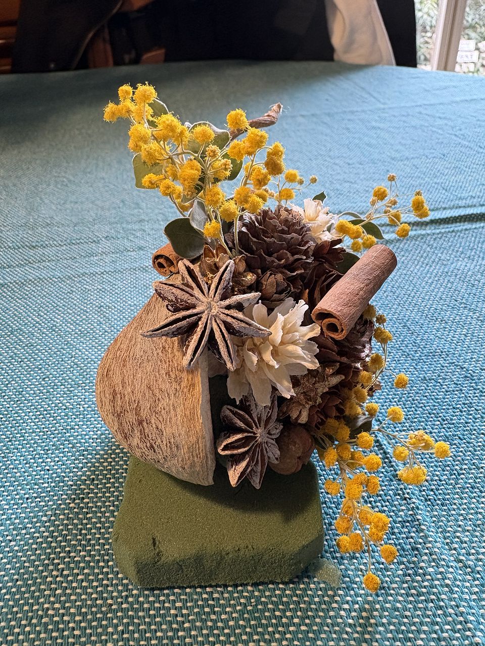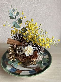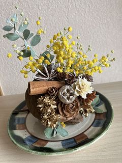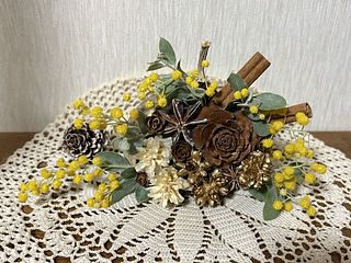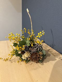 添付の動画を見て想像しながら予習したり、皆さんの写真をみたり…スワッグも作れるんだ〜とか思ったり…、…時期によるんでしょうか…思ってた以上に届いた花材が少ない…え?これ大丈夫?と思いましたw