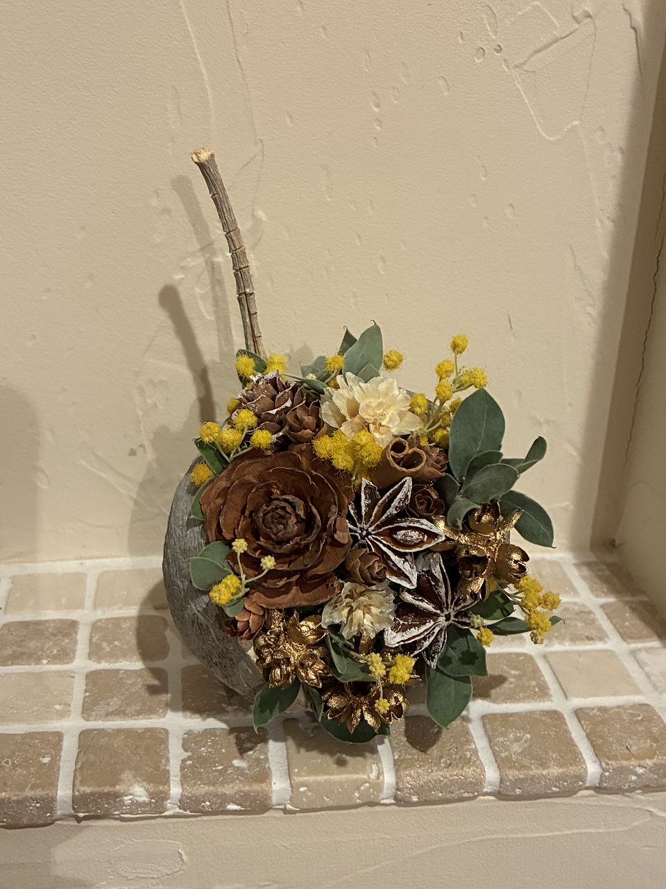盛り盛りがタイプなんです…私。なので、最初は届いた花材で仕上げましたが…以前たのんだスワッグから少々カットしたり、とやはり盛り盛りに仕上げましたw