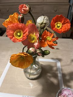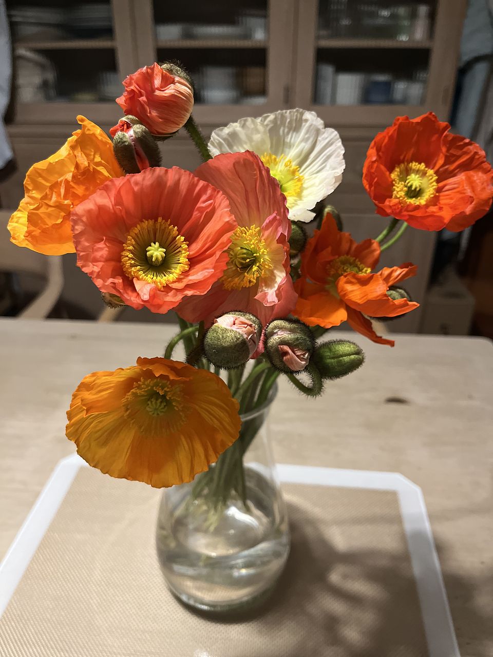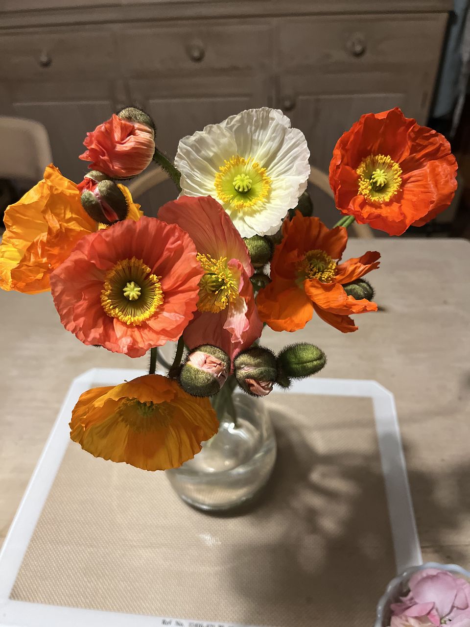 ポピーの季節がやってきました!おじぎをしたような蕾と、くしゃっとした花びらが愛らしいお花🌼
